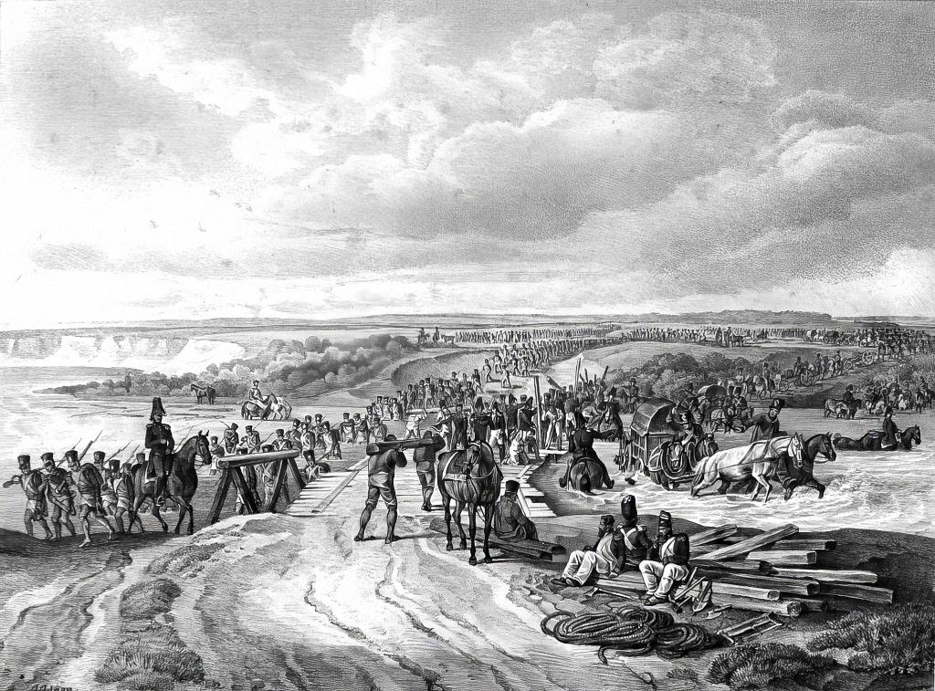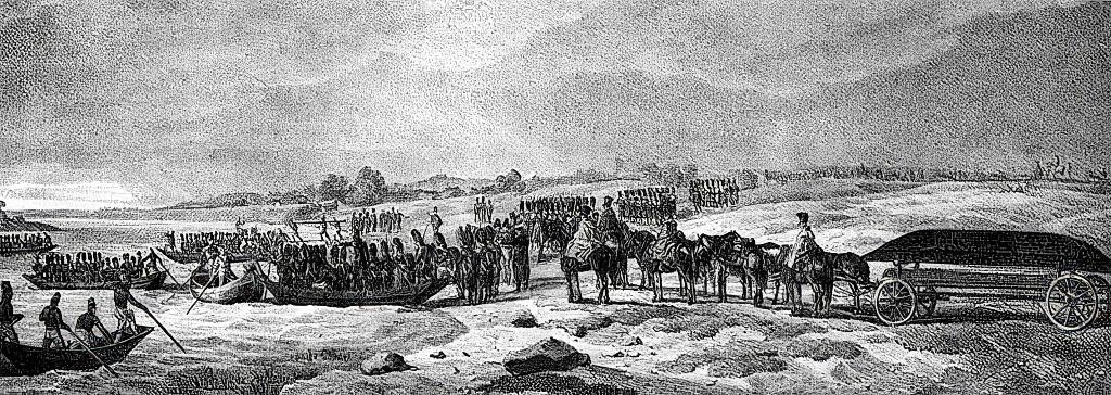 Французские гренадеры переправляются через реку Неман