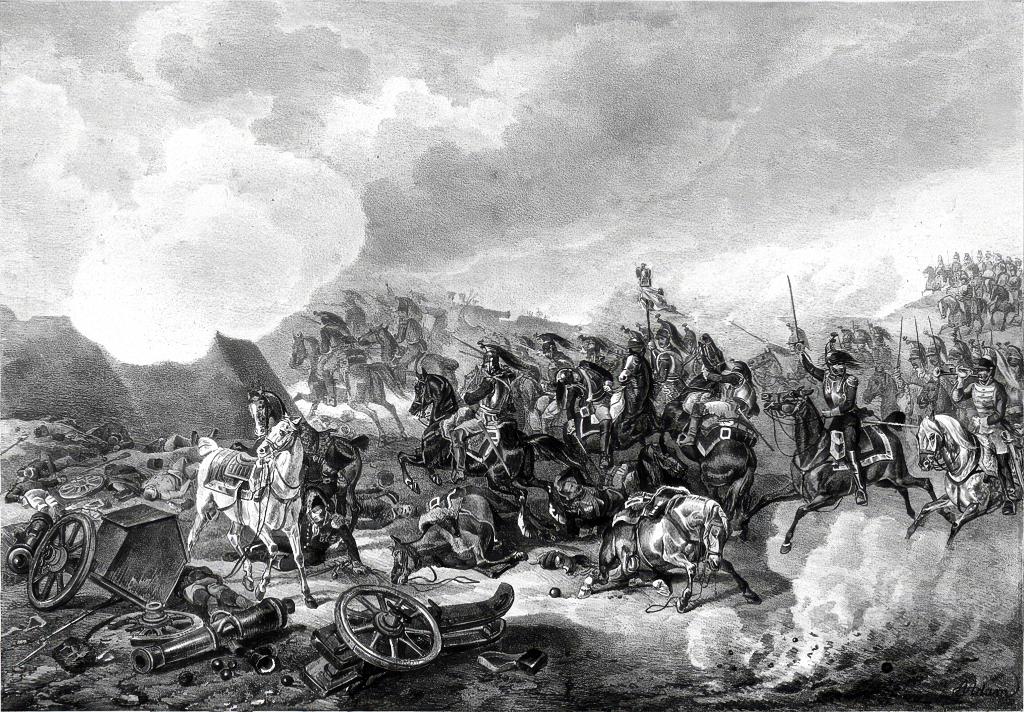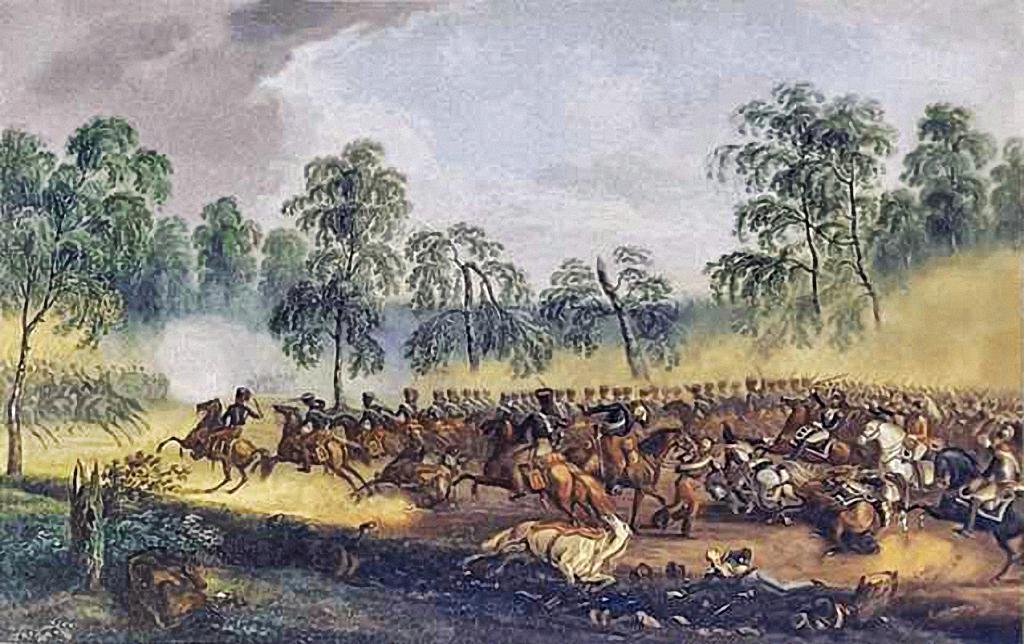 Саксонские кавалеристы слева атакуют