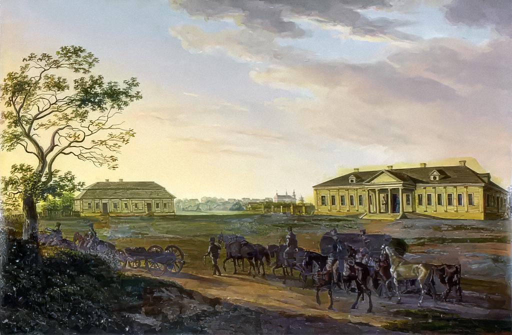 Бочейково. Войска Наполеона перед дворцом Цехановицких. 1812.