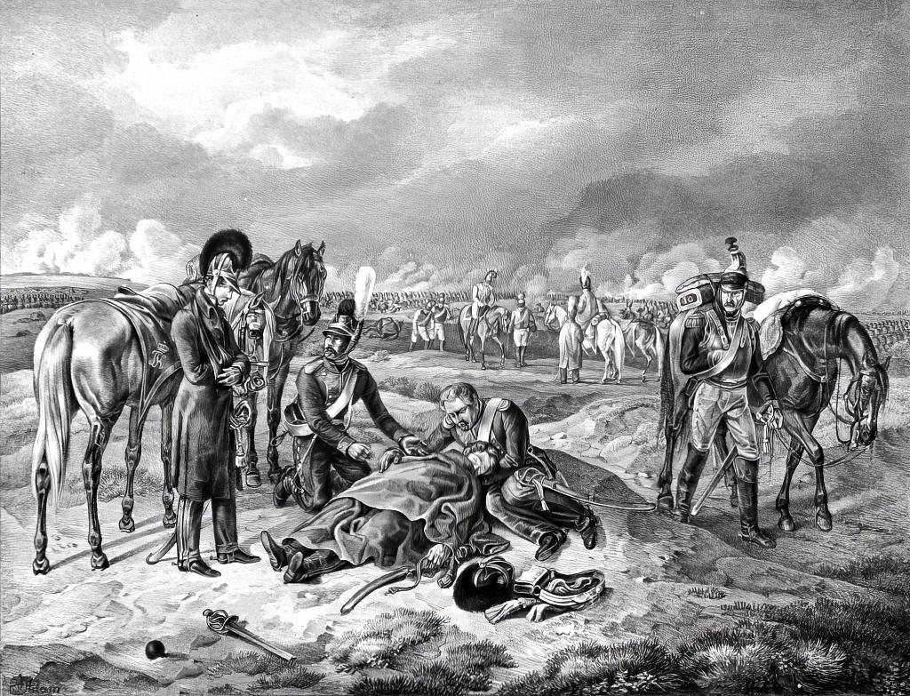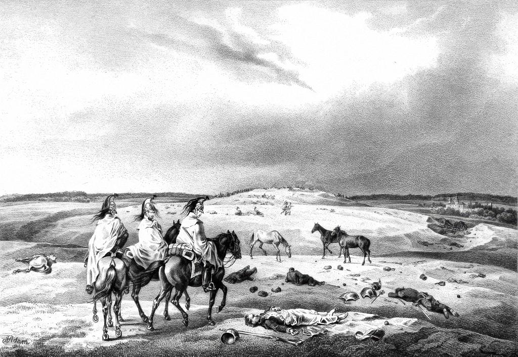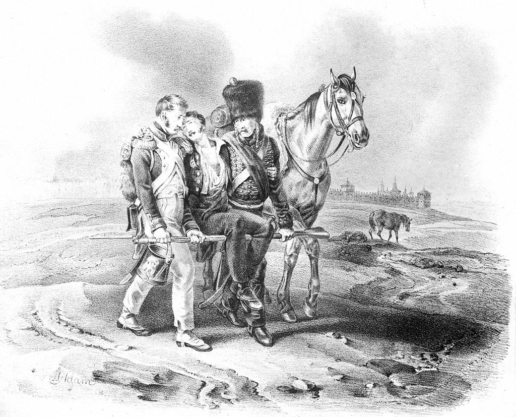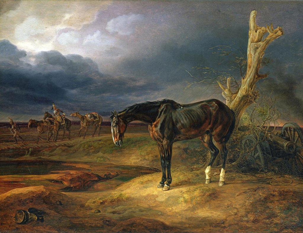 Лошадь без наездника на поле битвы в Можайске в 1812 году