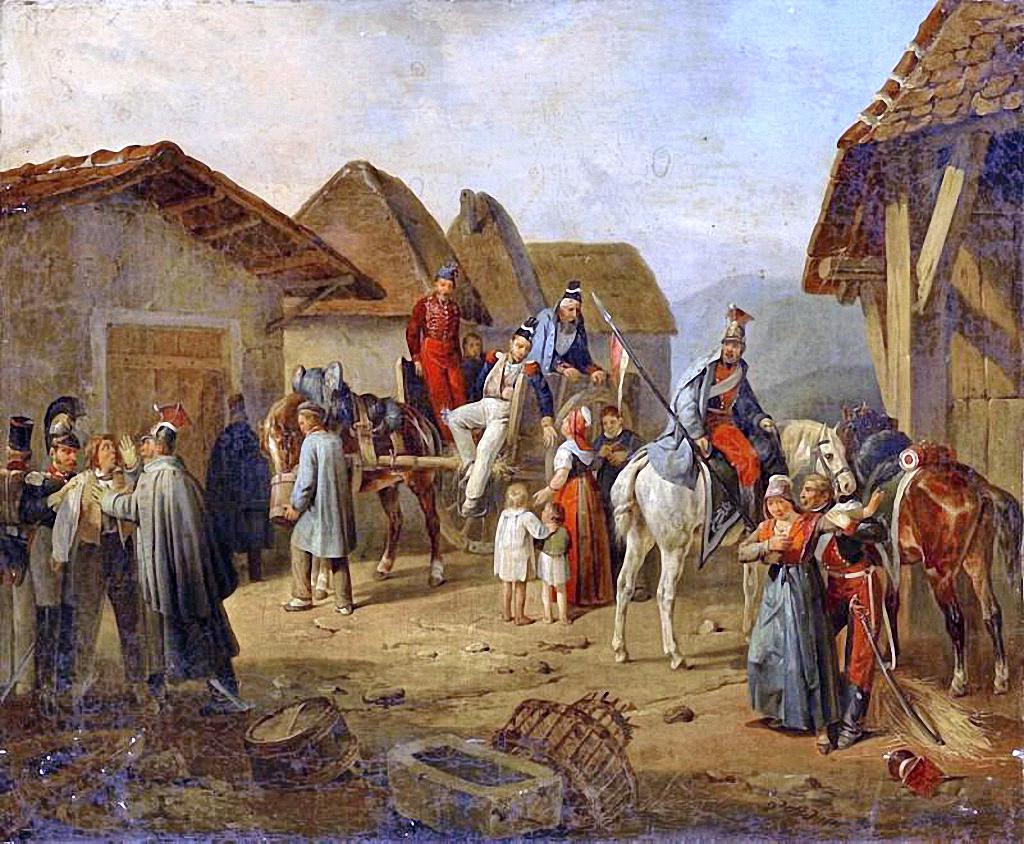 Австрийская кавалерия отдыхает в деревне