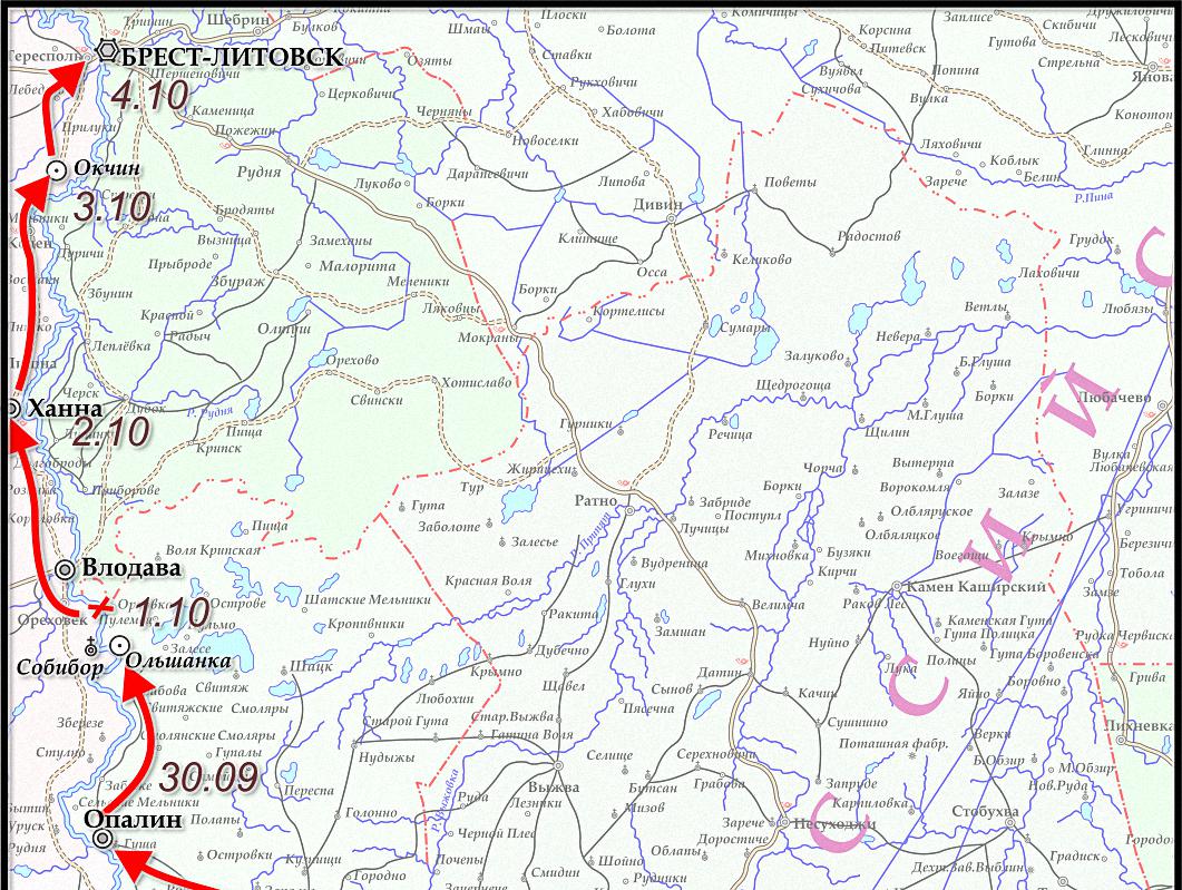 - 1-я кавалерийская дивизия, генерал-лейтенант фон Функ.